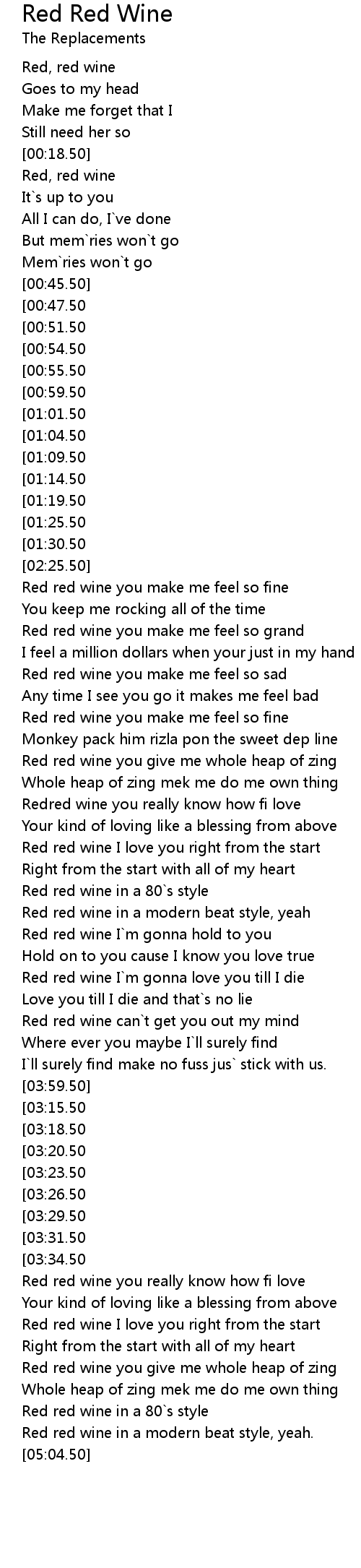 Red red wine you really know how fi love |