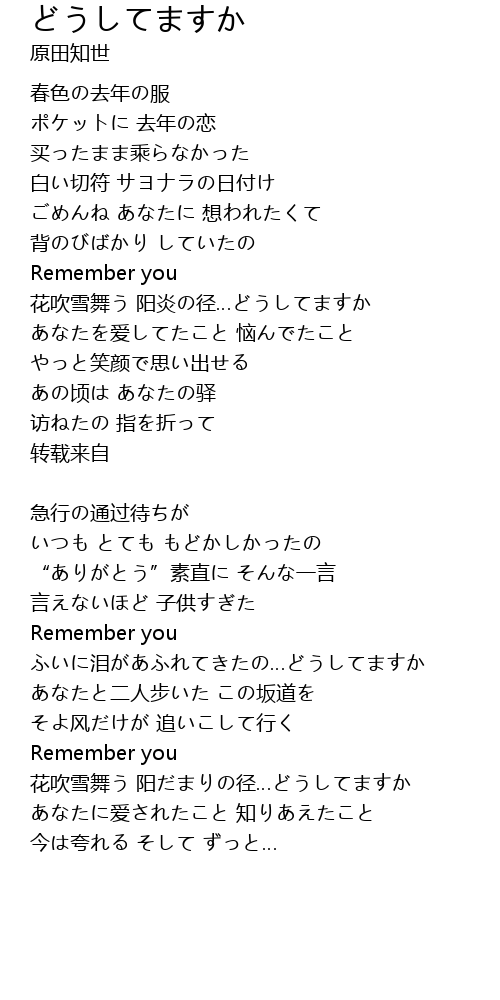 | 歌曲 | どうしてますか |