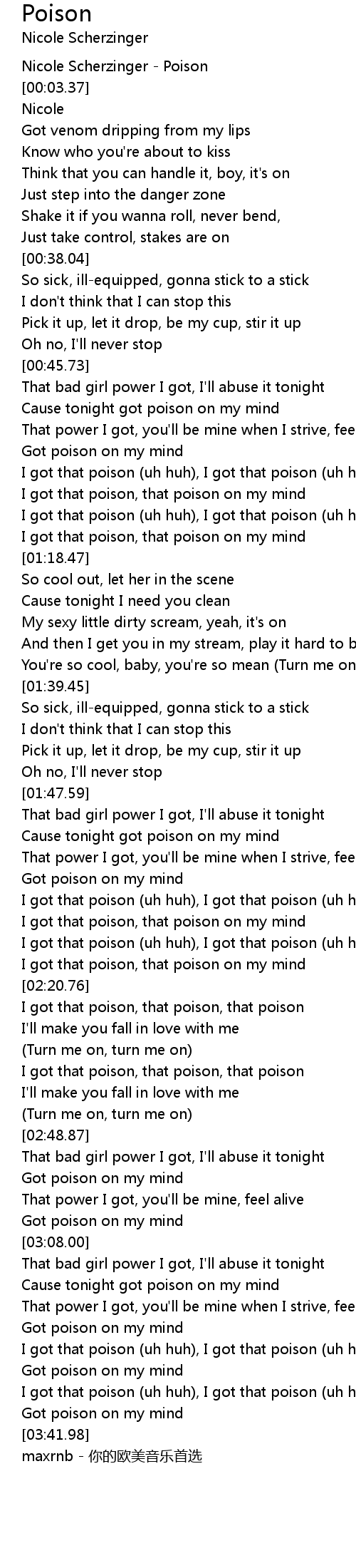 | [00:01.11] | Nicole Scherzinger - Poison |