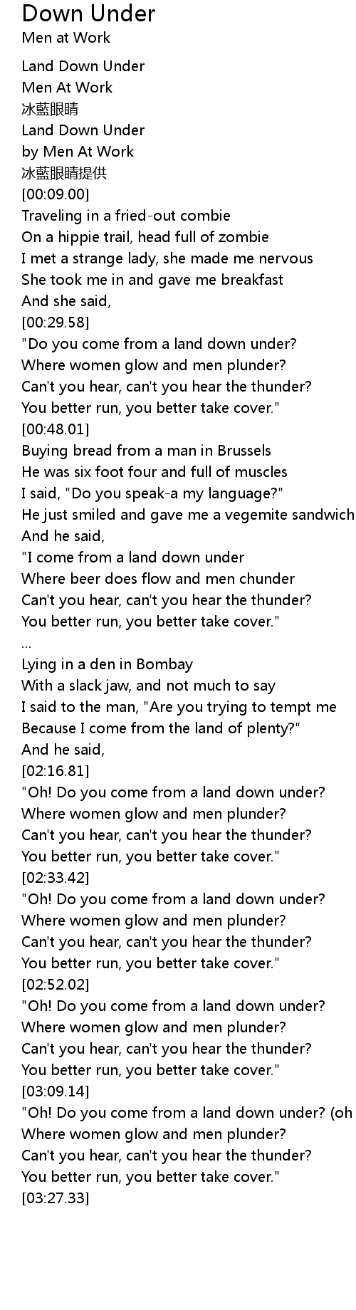 | [00:01.00] | Land Down Under |