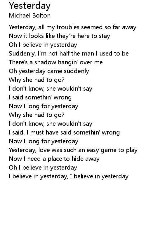 Oh yesterday came suddenly |