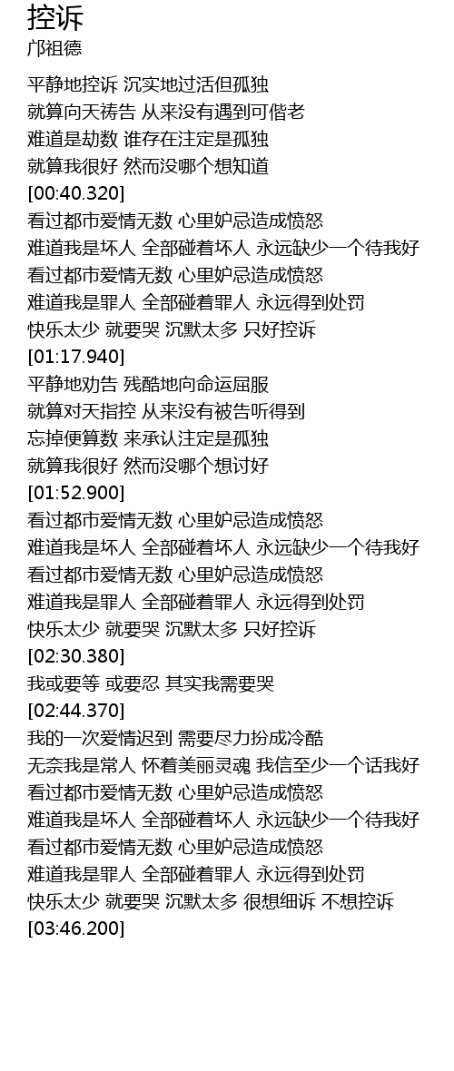 | [03:32.190] | 快乐太少 就要哭 沉默太多 很想细诉 不想控诉 |