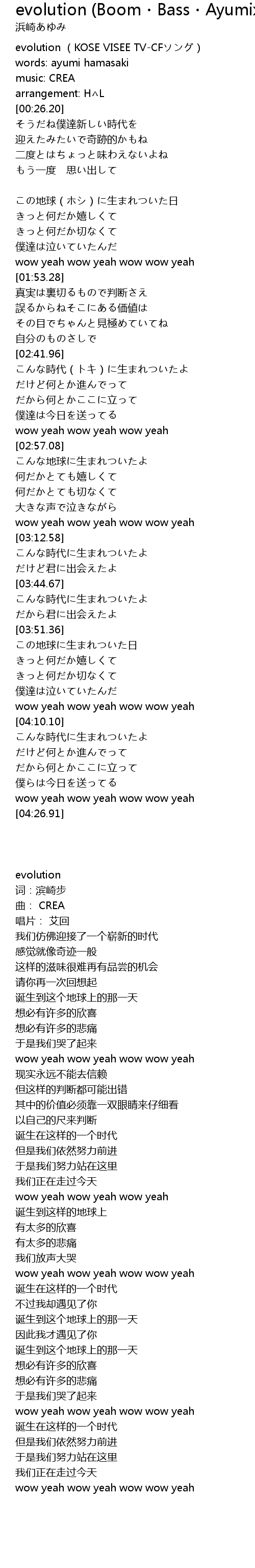 | [00:01.32] | evolution (KOSE VISEE TV-CFソング) |