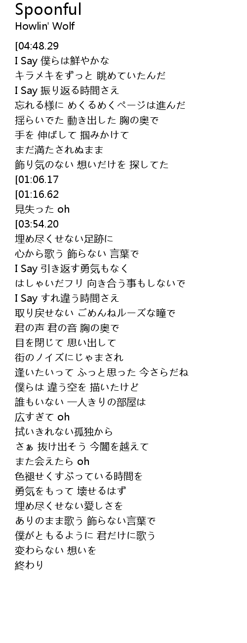 | [04:14.15][03:54.20][02:54.44][01:27.59] | もっと深く えぐるスプーンで |