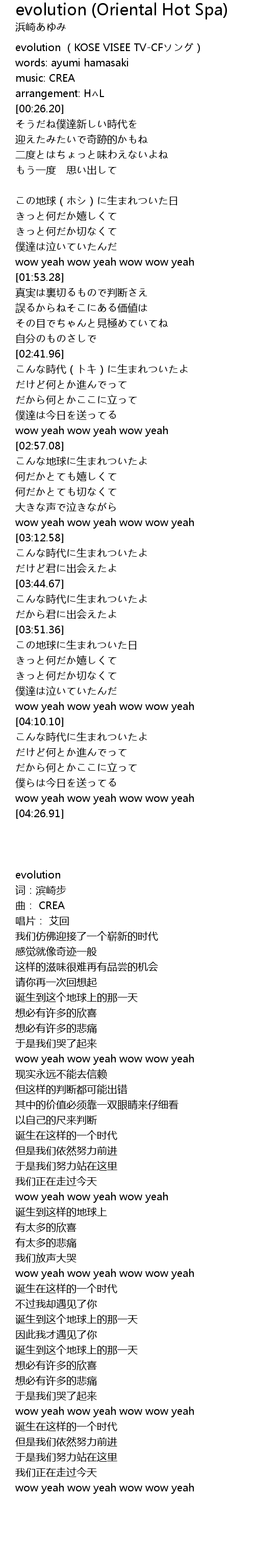| [00:01.32] | evolution (KOSE VISEE TV-CFソング) |