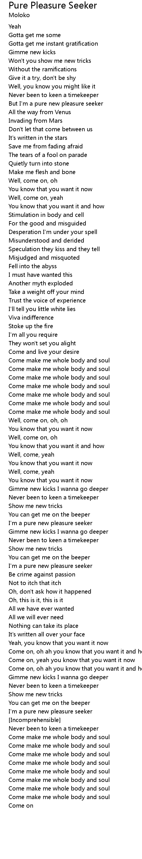 But I'm a pure new pleasure seeker |