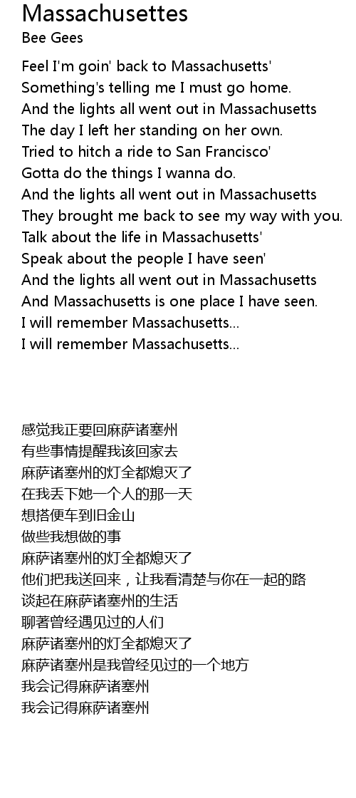 [00:09.000] Feel I'm goin' back to Massachusetts'