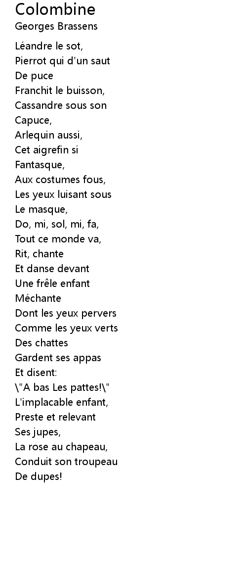 | Arlequin aussi, | |