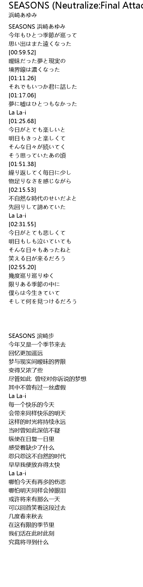 | [00:00.44] | SEASONS 浜崎あゆみ |