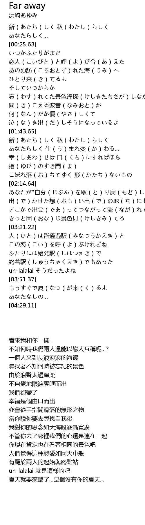 | [04:15.43] | 夏天就要來臨了...是個沒有你的夏天... |