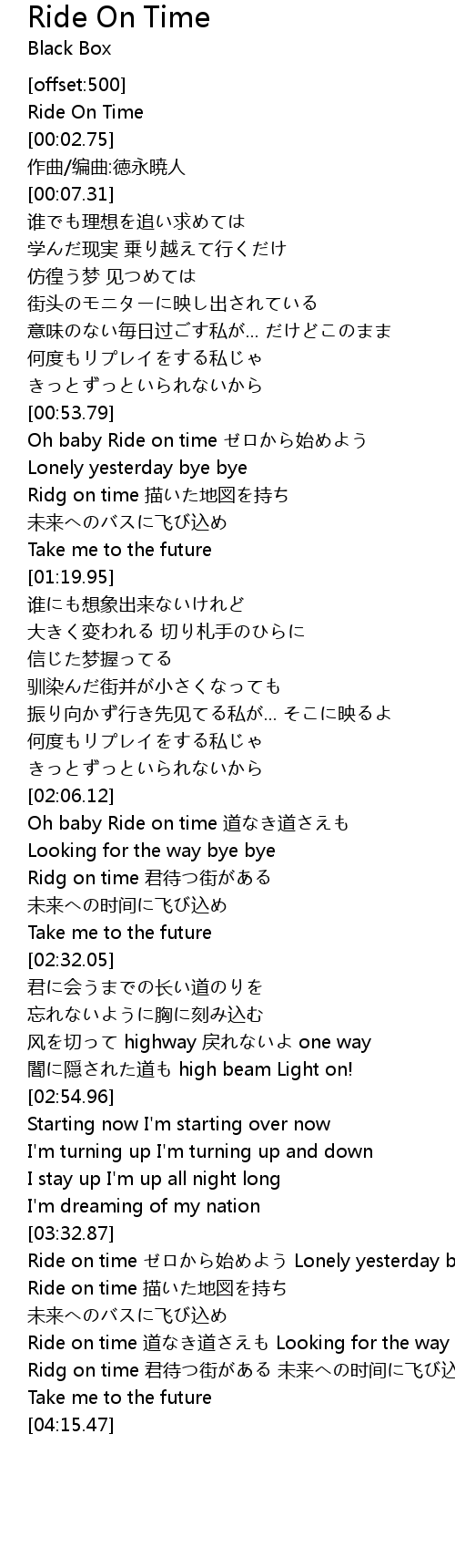 | [00:01.30] | Ride On Time |