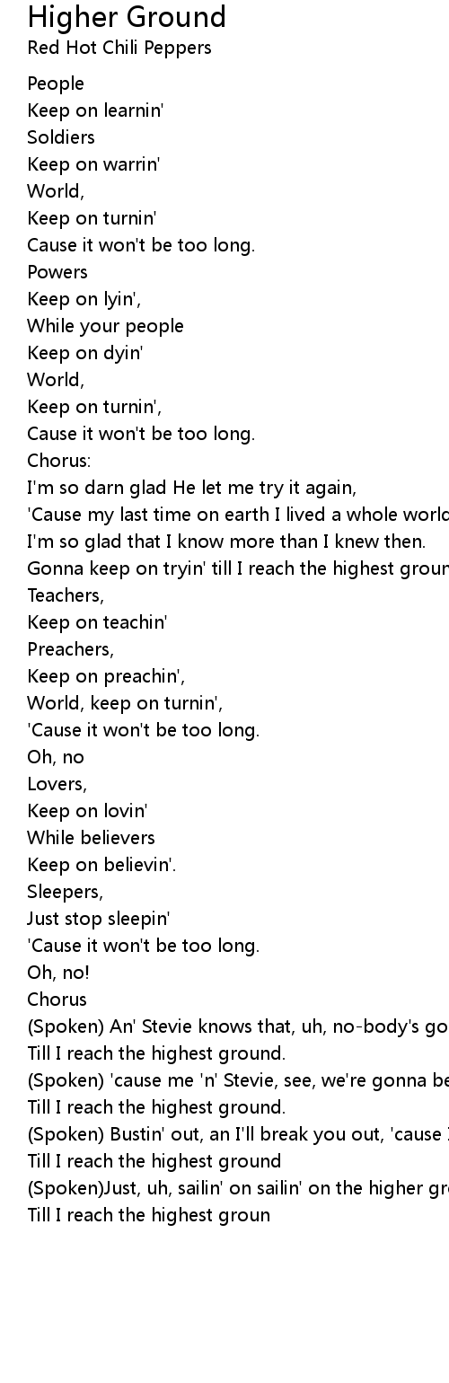 Gonna keep on tryin' till I reach the highest ground. |