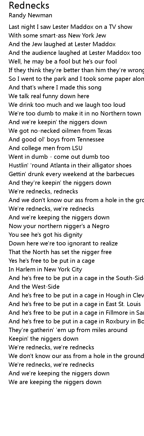 And we're keepin' the niggers down |