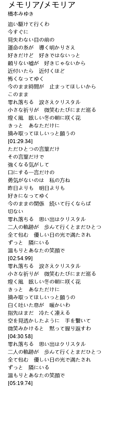 | [04:35.96] | 零れ落ちる 思い出はクリスタル |