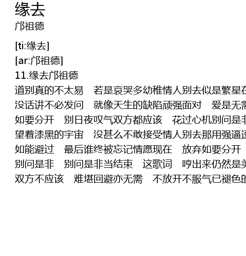 | [00:01.50] | 11.缘去邝祖德 |