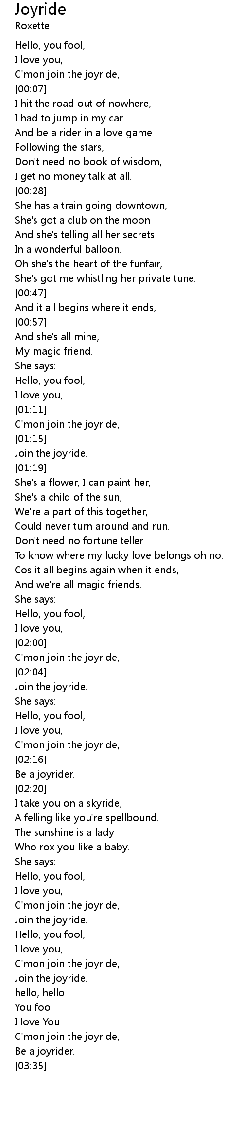 C'mon join the joyride, |