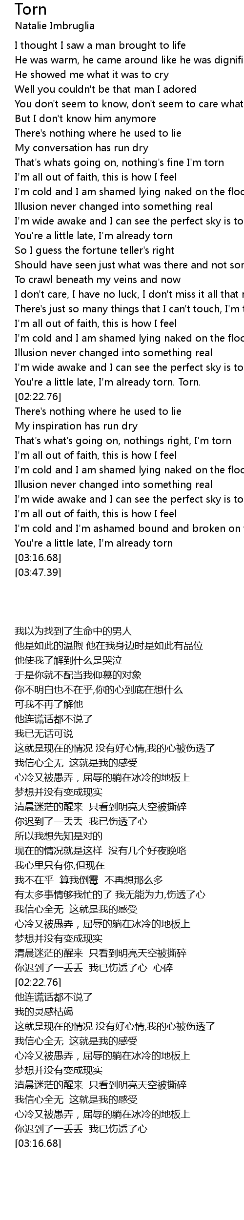 You're a little late, I'm already torn. Torn. |