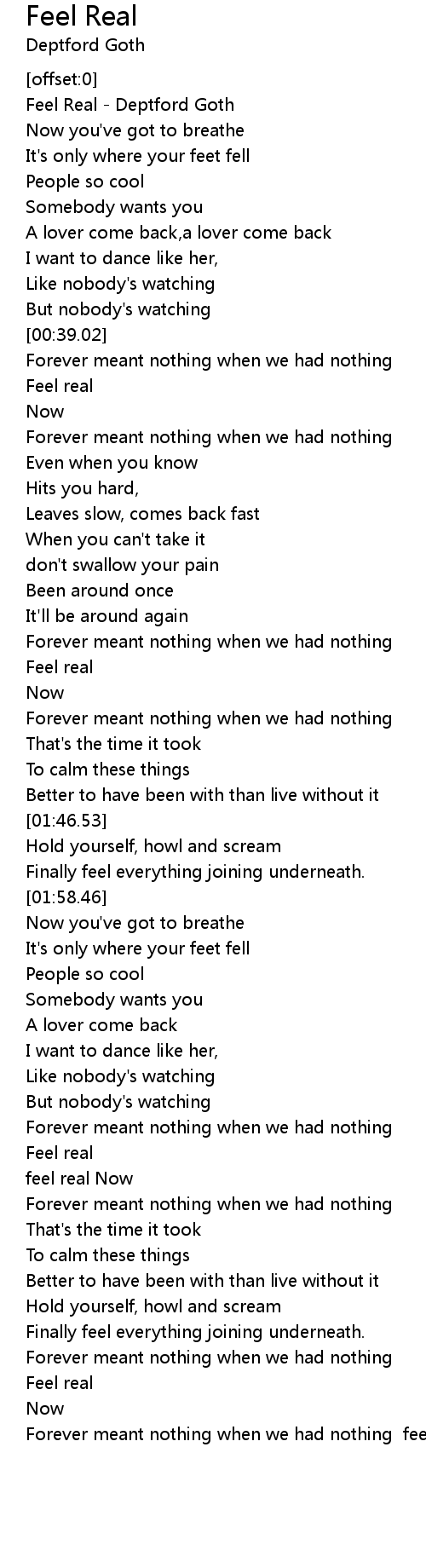 Forever meant nothing when we had nothing feel real now |