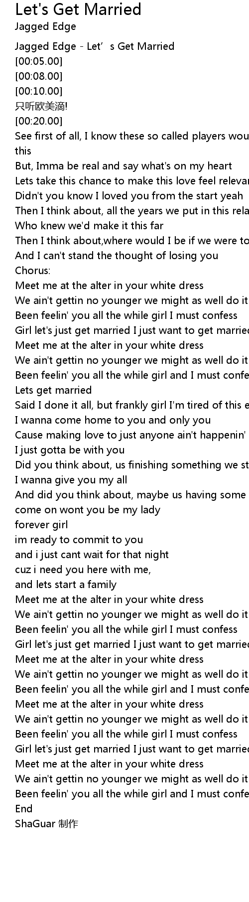 | [03:26.68] | Girl let' s just get married I just want to get married |