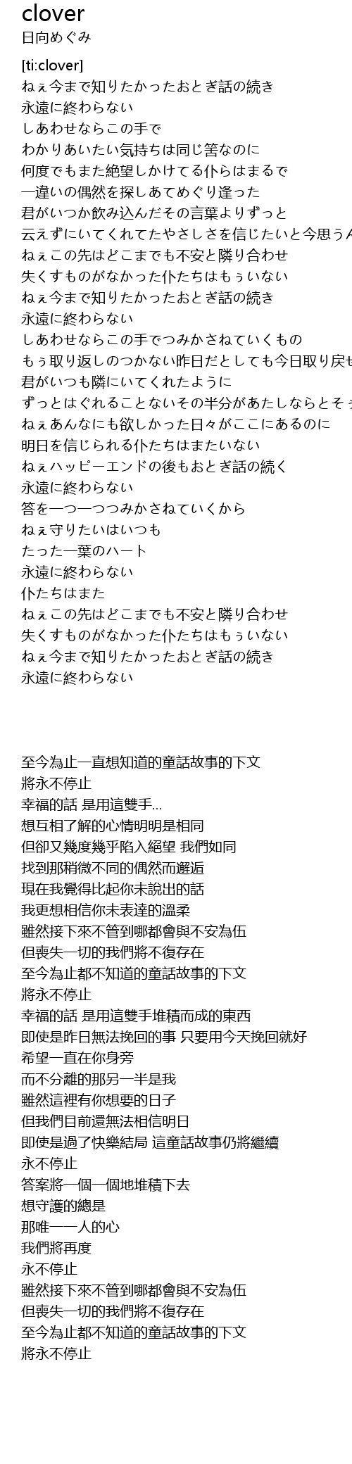 | [02:35.339] | ねぇハッピーエンドの後もおとぎ話の続く |