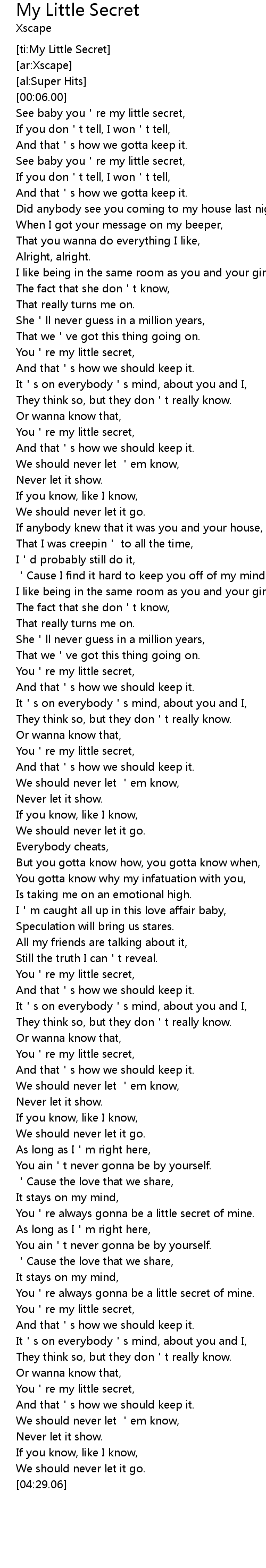 | [03:54.32] | You re always gonna be a little secret of mine. |