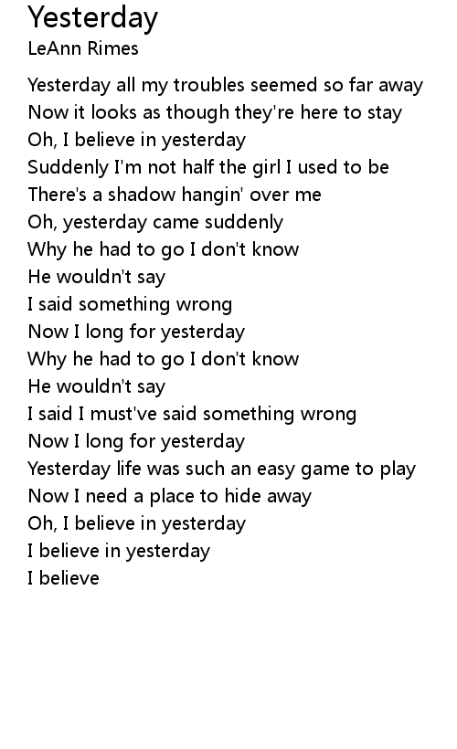I believe in yesterday