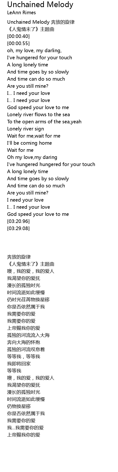 | [00:00.00] | Unchained Melody 奔放的旋律 |