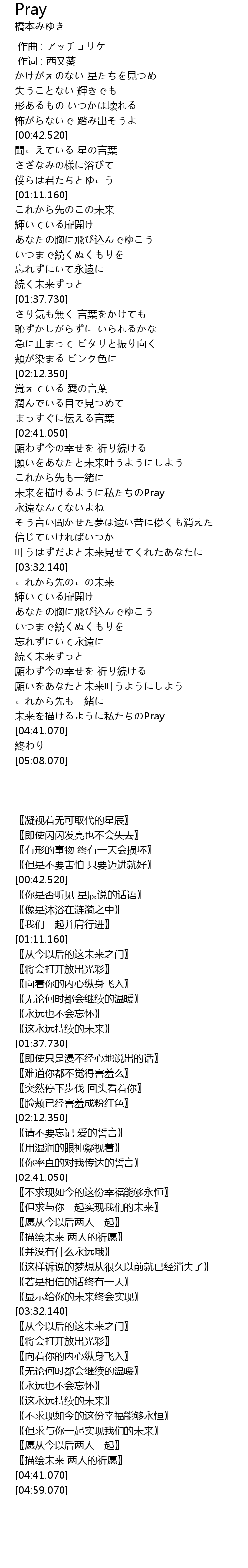 | [04:30.500] | 未来を描けるように私たちのPray |
