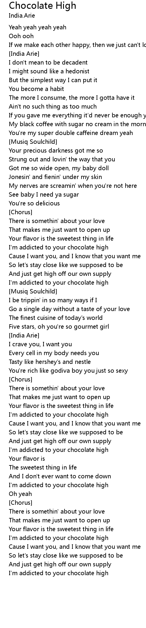 I'm addicted to your chocolate high |