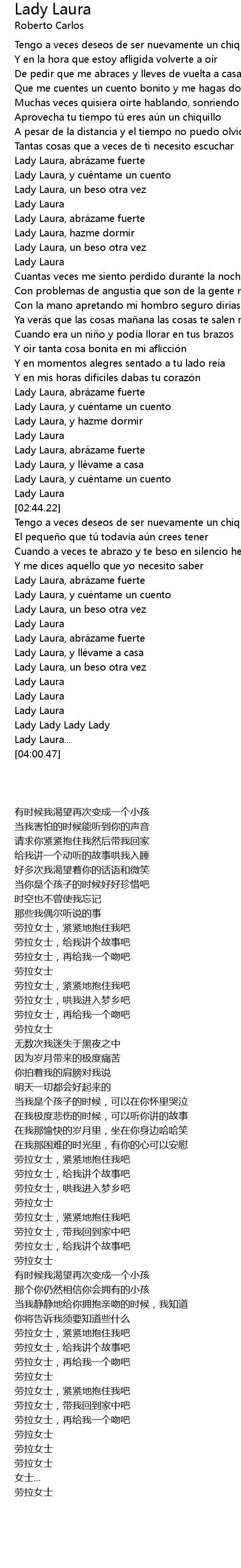 | [02:17.87] | Lady Laura, abrázame fuerte |