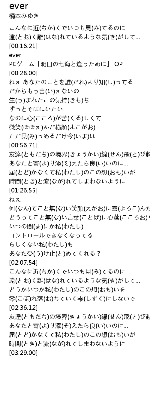 | [00:25.00] | PCゲーム「明日の七海と逢うために」 OP |