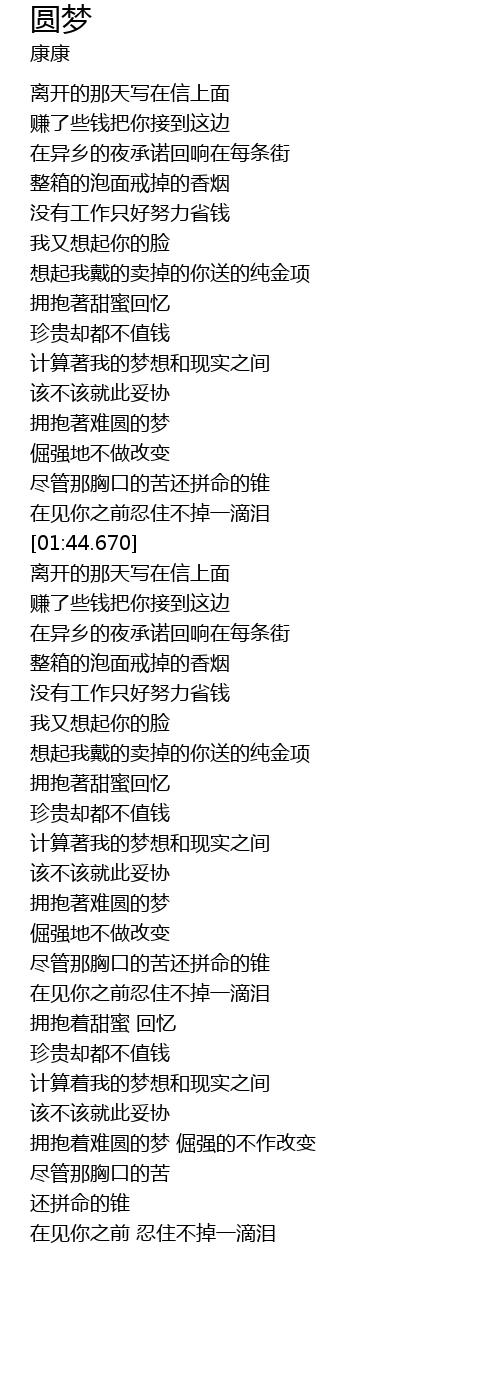 | [03:30.420] | 计算着我的梦想和现实之间 |