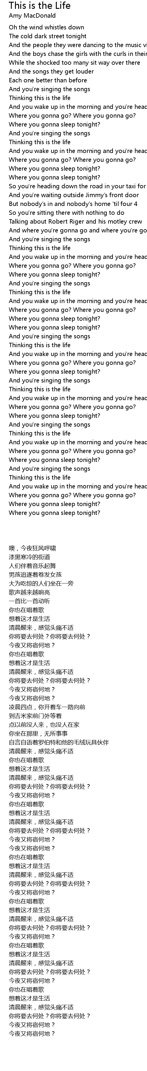 And where you're gonna go and where you're gonna sleep tonight |