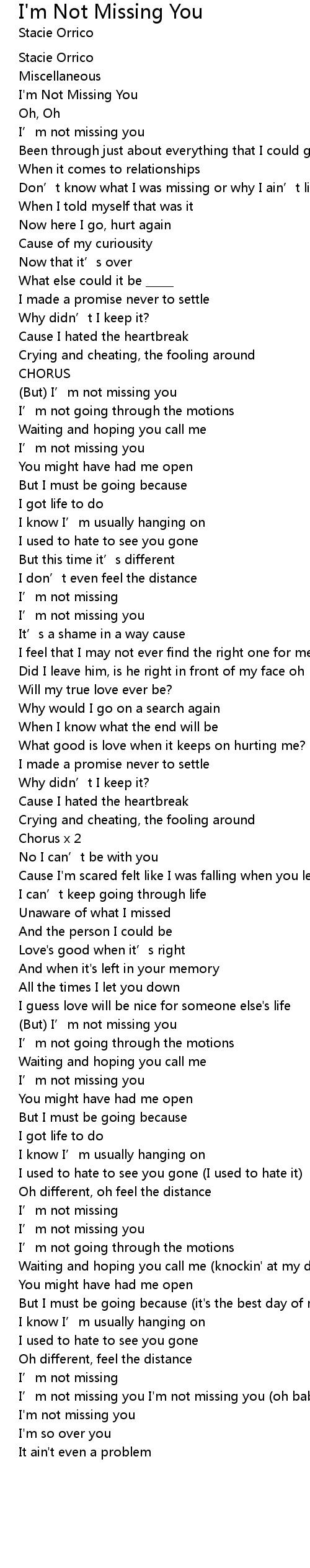| I' m not missing you I' m not missing you oh baby | |