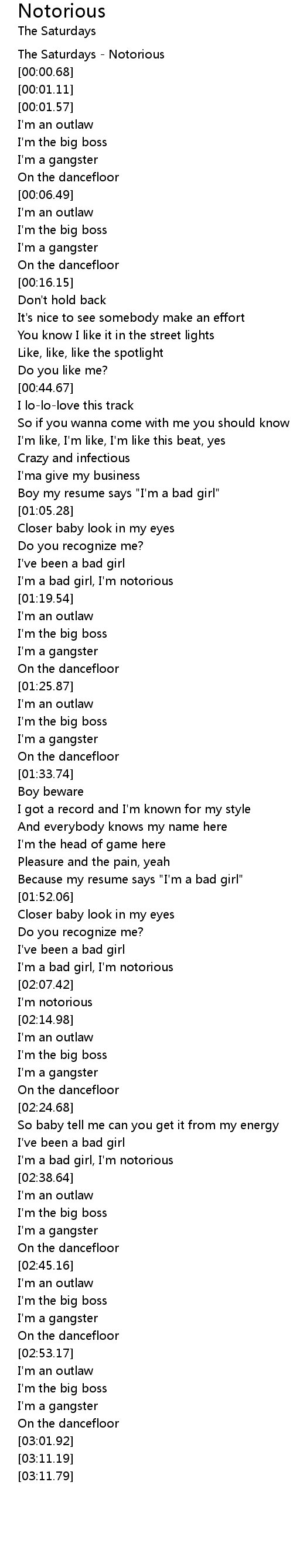 I'm a bad girl, I'm notorious |
