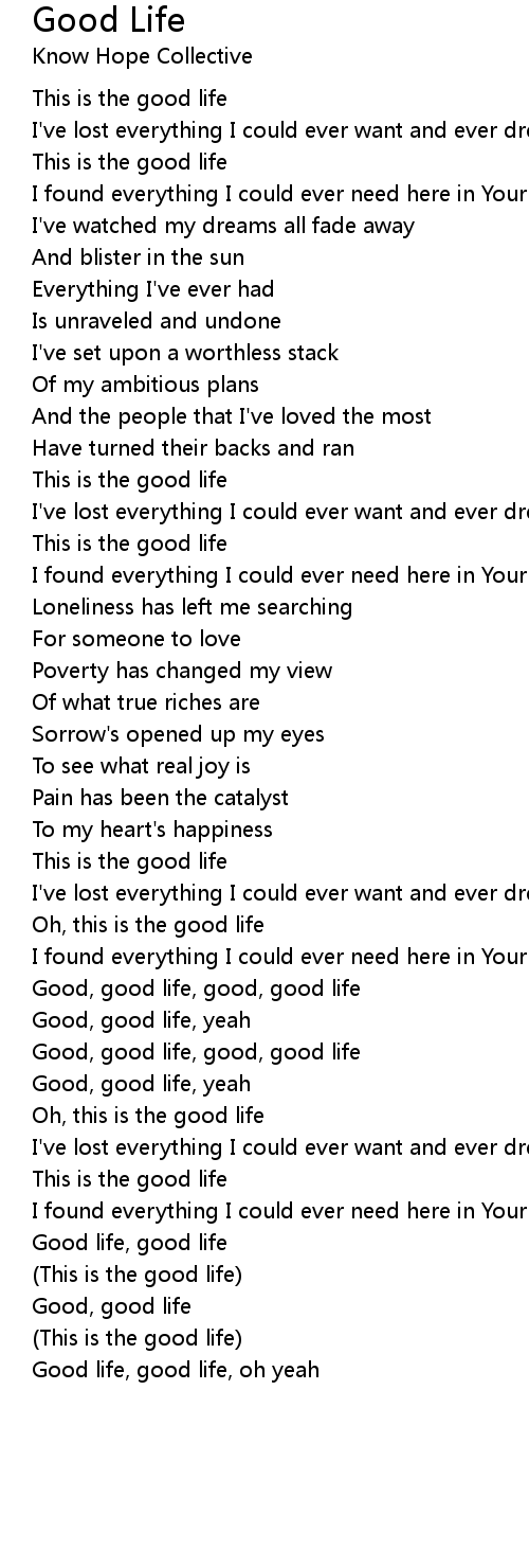 Good life, good life |