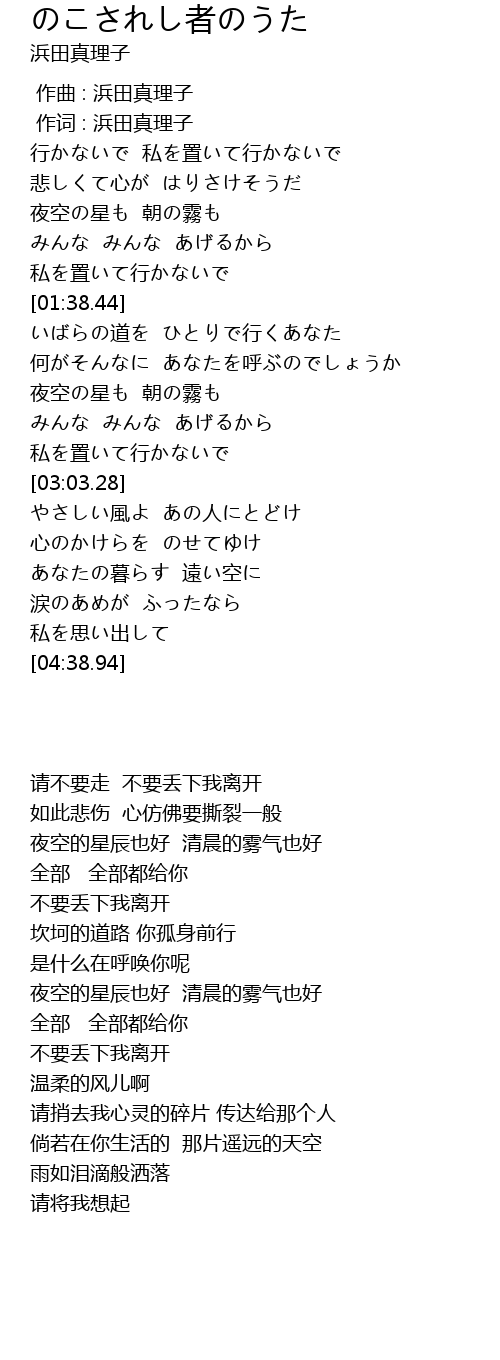 | [00:01.00] | 作词 : 浜田真理子 |
