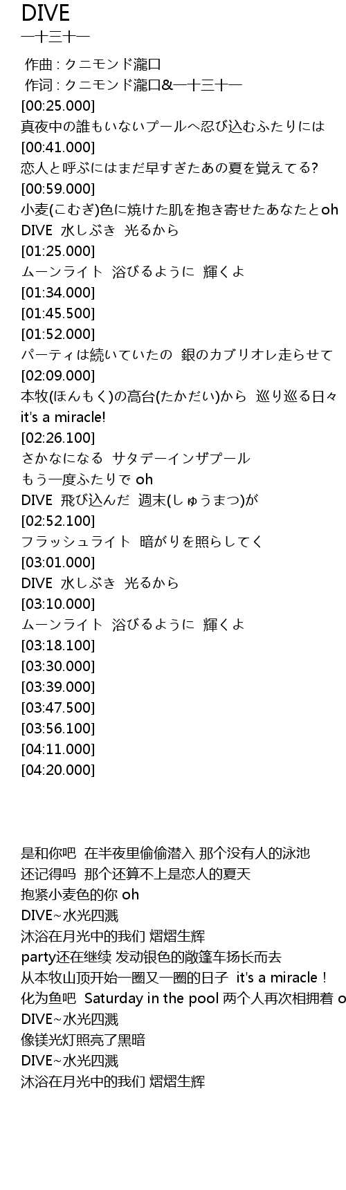 | [03:04.000] | DIVE 水しぶき 光るから |