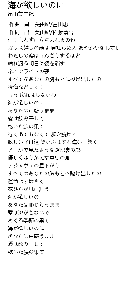 | [00:01.000] | 作词 : 畠山美由紀/佐藤慎吾 |