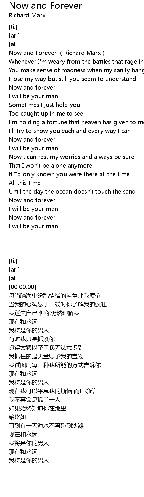 | [00:00.00] | Now and Forever (Richard Marx) |