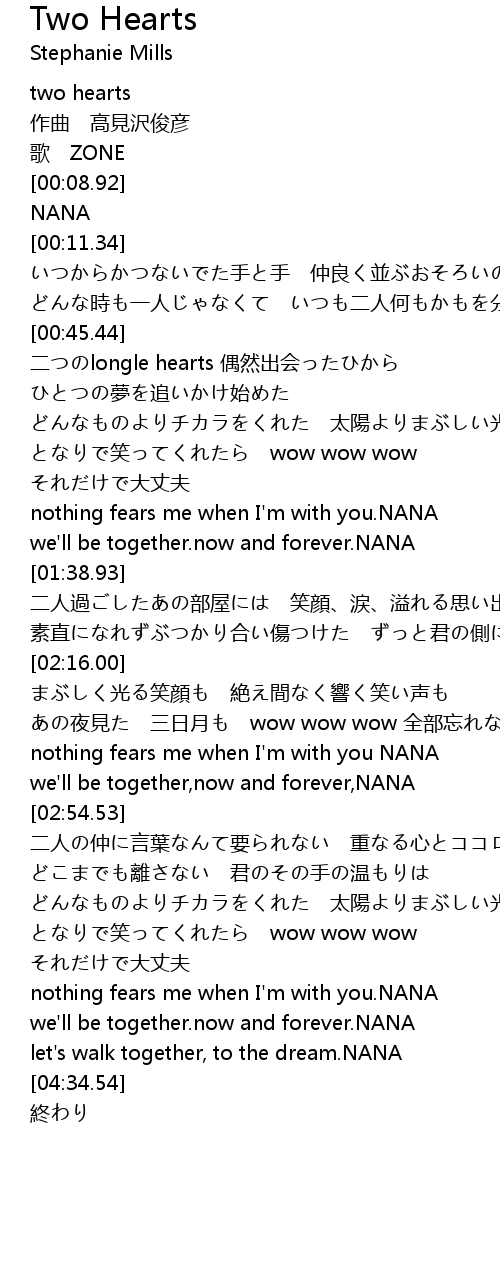 | [00:02.91] | two hearts |