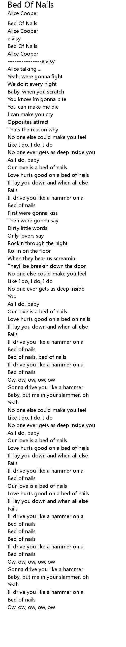Bed of nails, bed of nails |