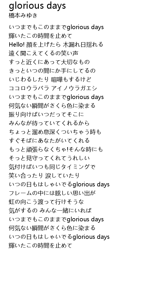 | いつまでもこのままでglorious days | |