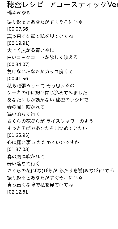 | [00:56.84] | あなたにしか効かない 秘密のレシビで |