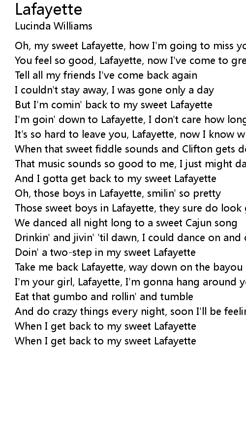 And I gotta get back to my sweet Lafayette |