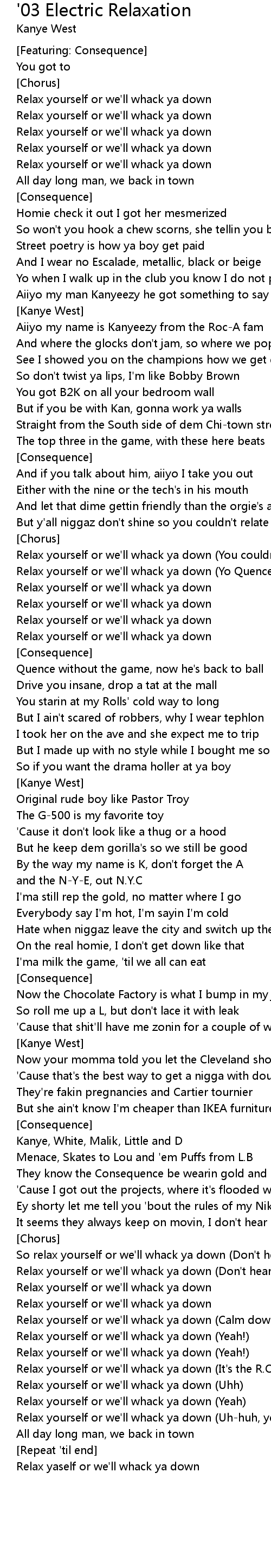 Relax yourself or we'll whack ya down (You couldn't relate) |