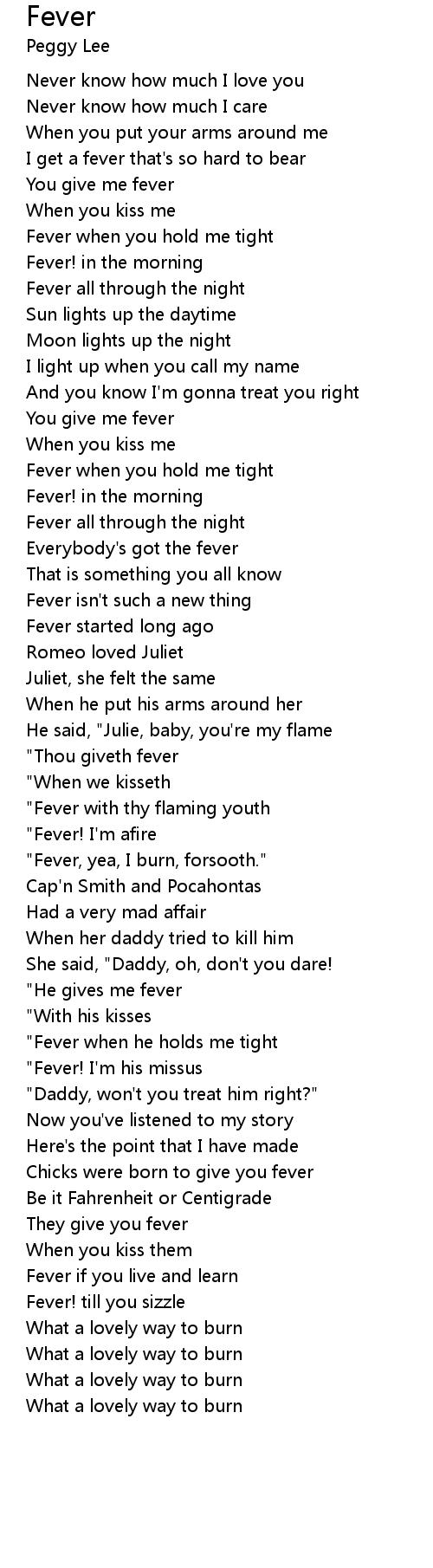 "Fever when he holds me tight |