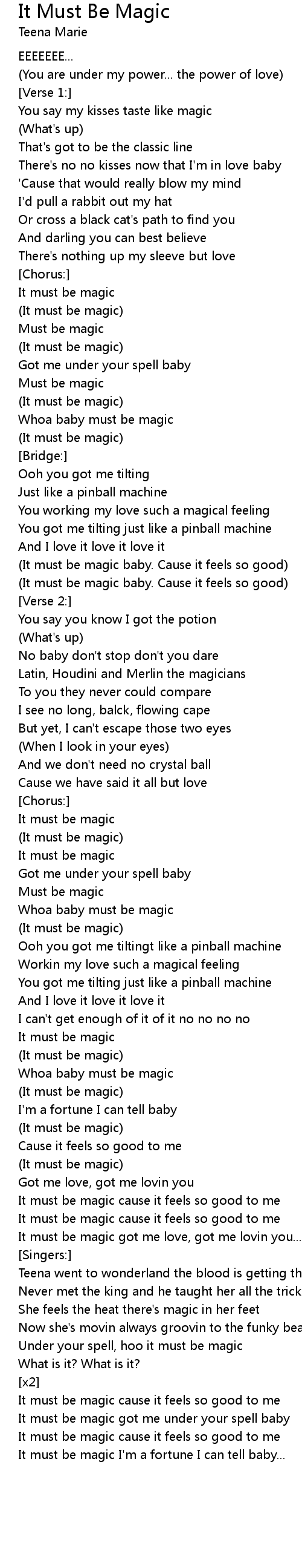 It must be magic got me under your spell baby |