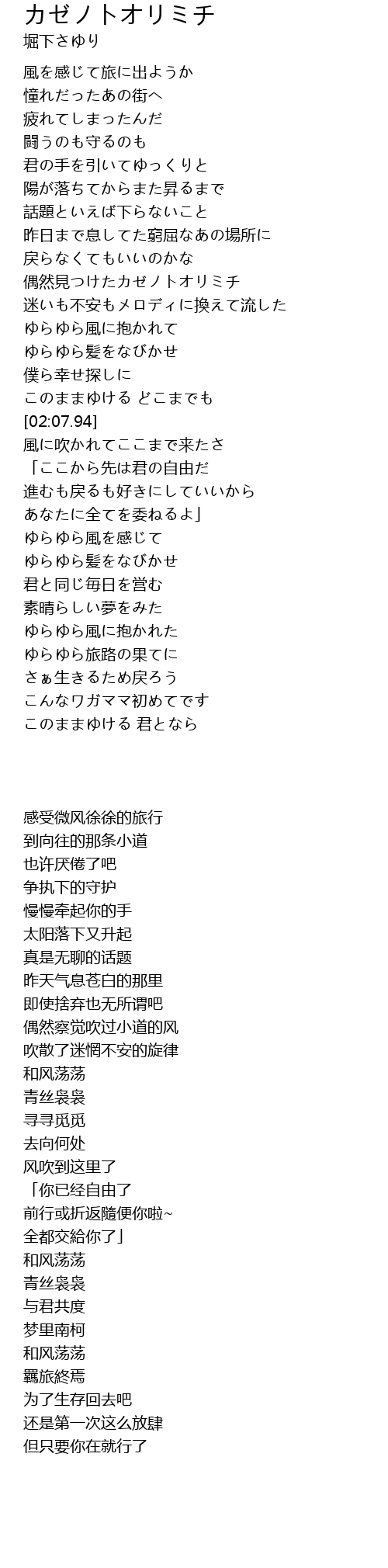 | [01:21.58] | 偶然見つけたカゼノトオリミチ |