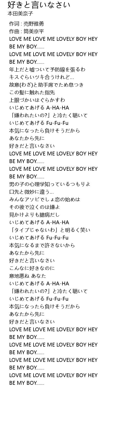 | [00:03.626] | LOVE ME LOVE ME LOVELY BOY HEY |